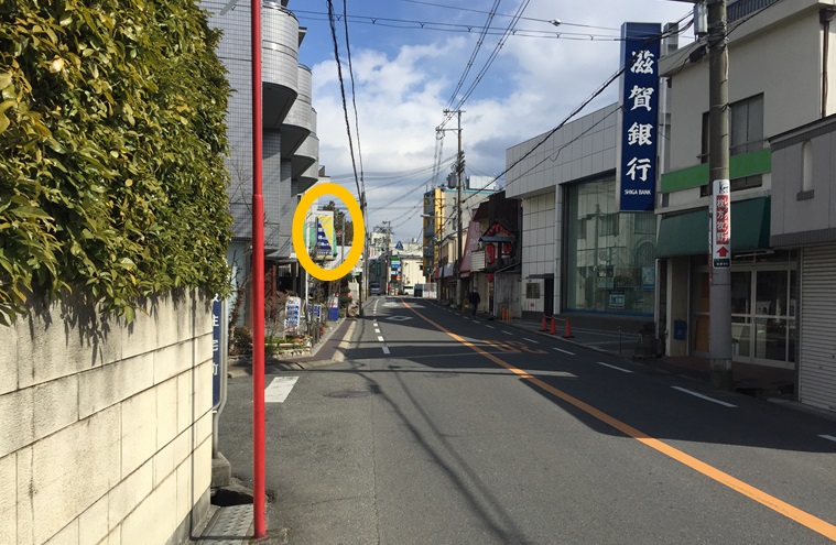 ⑩信号を越えた所、右手に「滋賀銀行」があり向かいに当院があります。