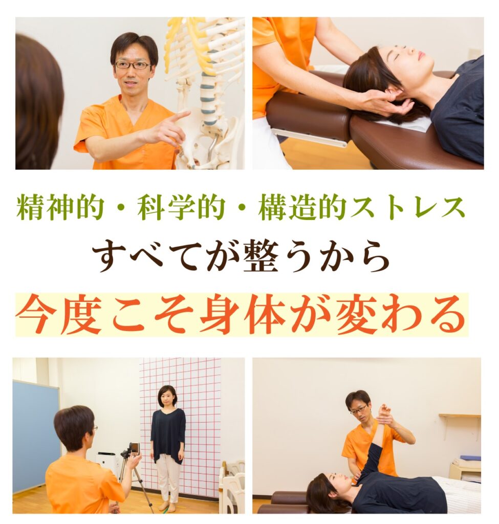 枚方自律神経調整院では、根本改善のために、「精神的ストレス」「化学的ストレス」「構造的ストレス」の3つを同時に整えていく必要があると考えています。