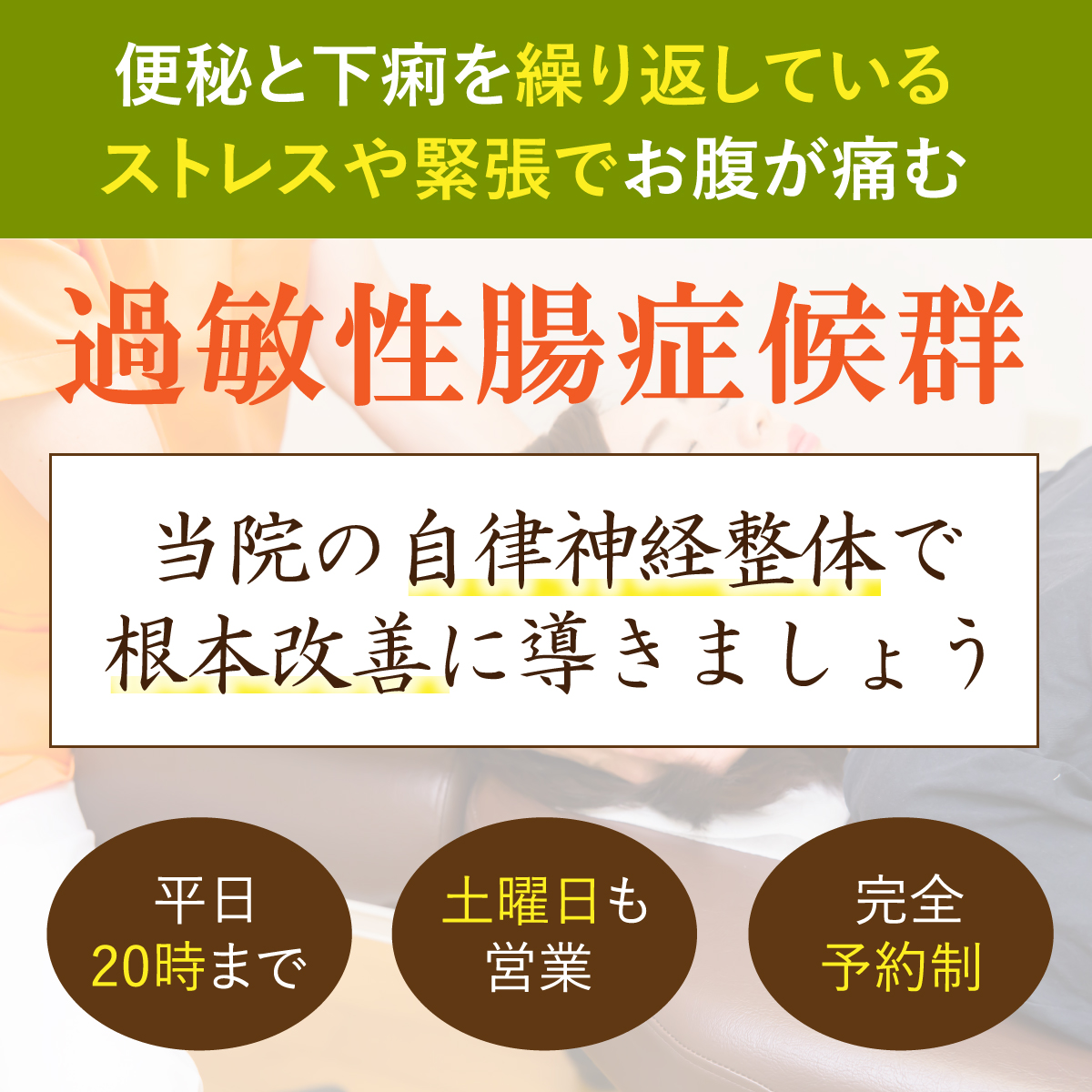 枚方市で過敏性腸症候群(IBS)でお困りなら、枚方自律神経調整院にご相談ください。