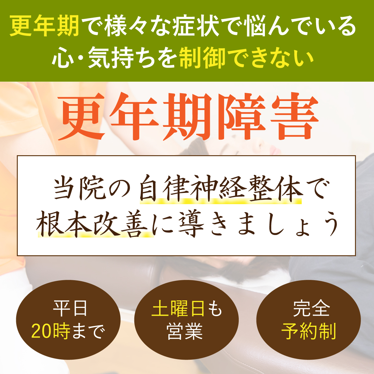枚方市で更年期障害でお困りなら、枚方自律神経調整院にご相談ください。