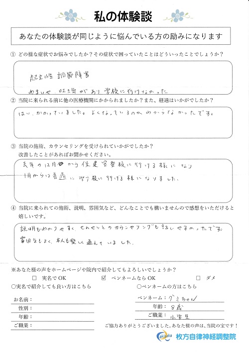 起立性調節障害でお悩みだった グミちゃん 8歳 小学生