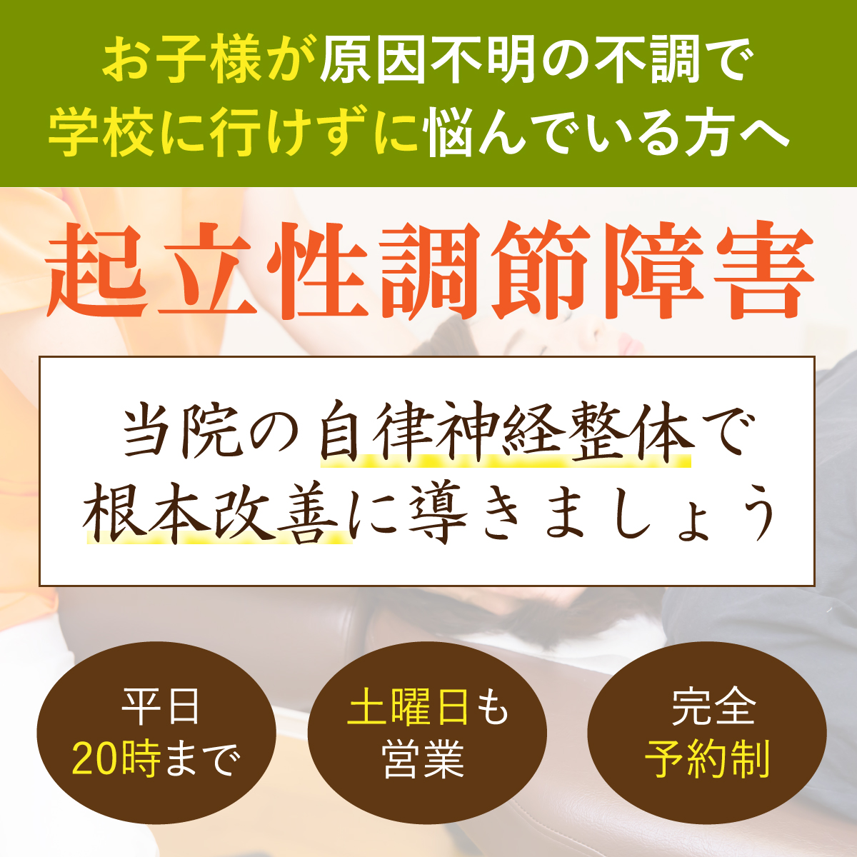 枚方市でお子様の起立性調節障害でお悩みなら、枚方自律神経調整院にご相談ください。