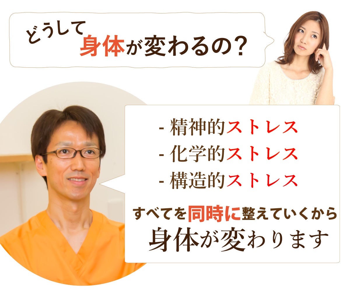 現代社会には3つのストレスがあります。それを「精神的ストレス」「化学的ストレス」「構造的ストレス」と呼びます。